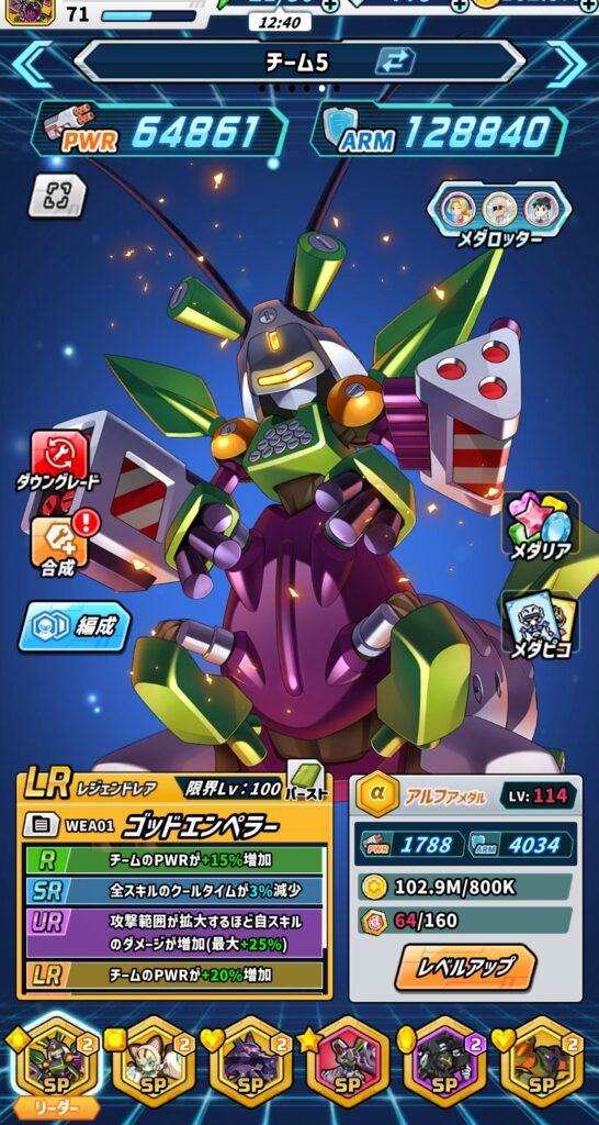 ゴッドエンペラー:Lv100,LR,メダリア(A:光学Lv6)