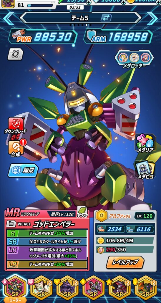 ゴッドエンペラー:Lv120,MR,メダリア(S:光学Lv4)